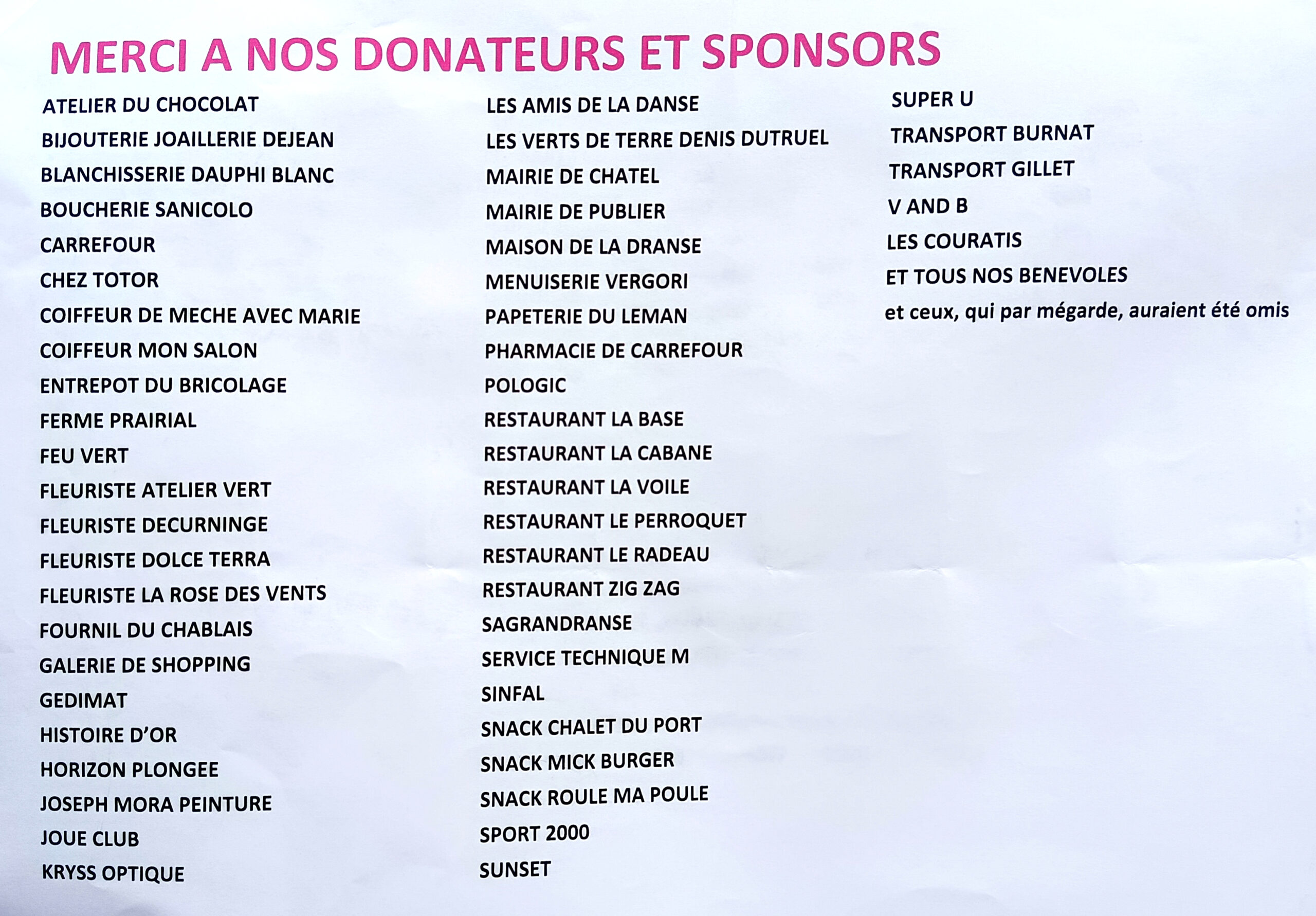 Les commerçants de Publier solidaires,les donateurs et sponsors