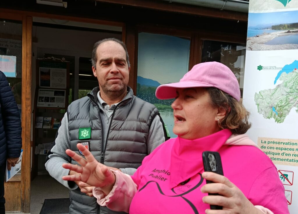 Les marcheurs ont écouté attentivement l’histoire du Delta de la Dranse. Des travaux importants ont été réalisés dans le respect de la faune locale, et de cet oiseau migrateur rare : le Sterne Pierregarin. C’est là, à l’embouchure de la rivière, qu’il trouve son seul lieu de nidification conçu de petits îlots caillouteux et sans végétation.